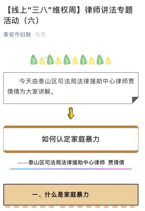 在疫情防控的特殊时期,为迎接第110个“三八”国际劳动妇女节的到来,泰安市泰山区司法局和法律援助中心,创新服务形式,线上线下两手抓,多措并举开展以“远离家庭暴力”为主题的三八妇女节维权专项活动。