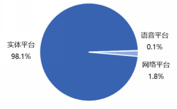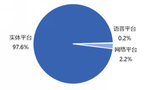 三大平台人民调解服务量中,实体平台占比97.6%。