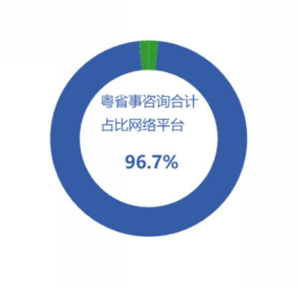 6月,广东法律服务网网络平台共提供咨询服务60233次,其中,来自粤省事小程序咨询5.19万次,占比96.7%。