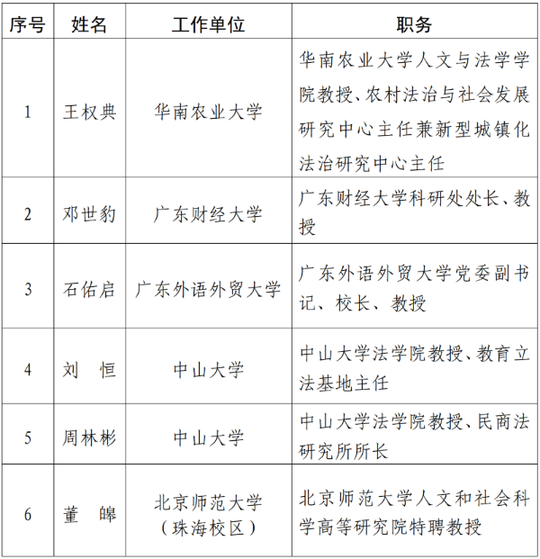 广东省司法厅关于省政府第二批专家学者法律顾问拟聘人选的公示