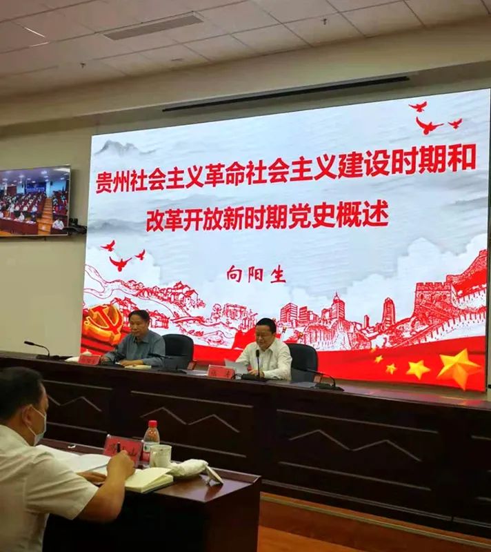 2021年9月27日,省司法厅在省司法警官学校举行党史学习教育和队伍教育整顿专题讲座,专题学习贵州社会主义革命与建设时期和改革开放新时期的党史,进一步推进党史学习教育和队伍教育整顿走深走实。省司法厅党委书记、厅长张涛主持讲座并讲话。省委原副秘书长、省委政研室原主任、省委办公厅原主任,省人大原常委、农委主任向阳生应邀作了题为“贵州社会主义革命社会主义建设时期和改革开放新时期党史概述”的专题辅导讲座。