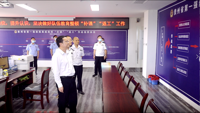 为深入贯彻落实全国、全省第二批政法队伍教育整顿部署要求,实地督导中央第十三督导组到省第一强制隔离戒毒所指出问题整改。9月27日,省司法厅党委书记、厅长张涛到“以下观上”联系点贵州省第一强制隔离戒毒所督导检查队伍教育整顿整改情况。省司法厅党委委员、省戒毒局党委书记、局长张卫国参加督导。