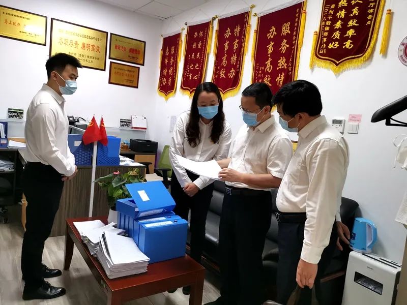 在厅驻省政务服务中心窗口,张涛详细了解“全省通办”“跨省通办”“一网通办”“一窗通办”“一证通办”五个通办的改革推进情况和窗口业务办理情况,翻阅了行政审批事项办事指南、审查要点和相关业务资料,对审批工作进行了现场指导,强调要深入学习贯彻习近平总书记“七一”重要讲话精神和习近平法治思想,认真贯彻政法队伍教育整顿要求,坚持以人民为中心的发展思想,持续深化“放管服”改革,不断优化营商环境,把“我为群众办实事”“我为基层解难题”各项要求落细落实,向群众提供更加优质高效的行政审批服务。要进一步提升审批质效,坚持高标准高要求办好每一项审批事项,强化省市县三级联动,推进审批服务便民化,树立“司法行政办事窗口”整体形象,提升司法行政审批服务改革整体协同效能。要进一步聚焦工作重点,树立窗口就是服务、窗口就是形象、窗口就是效益、窗口就是阵地的意识,围绕高频办理事项和“五个通办”改革,进一步压缩审批时限,简化审批流程,确保全省第二批政法队伍教育整顿取得实效。要进一步提升服务水平,多听取办事群众意见建议,设身处地为群众办实事、解难题,让群众少跑腿、数据多跑路,打造便民、利民、优质、满意的窗口。