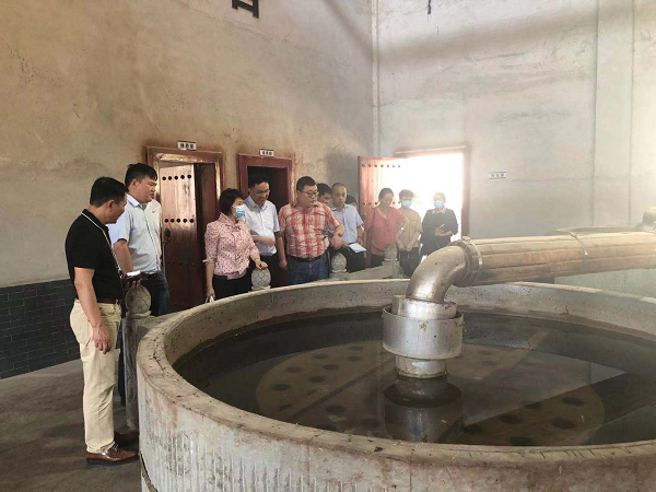 调研组一行来到仁怀市名酒工业园区,对夜郎古酒业、国台酒庄、钓鱼台国宾酒业等进行了实地调研,通过现场查看酿酒车间、生产污水处理设施等,深入了解企业排污治理等有关情况。