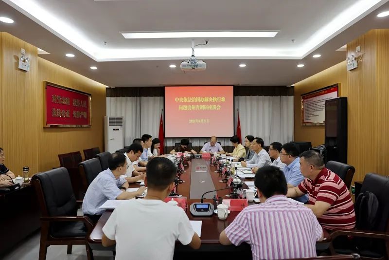 6月21日上午,调研组在省委依法治省办召开座谈会,听取省委依法治省办、省高级人民法院、省人民检察院、省发展改革委、省公安厅、省司法厅、贵阳市中级人民法院关于从源头解决执行难问题、法治乡村建设、行政复议体制改革等工作情况汇报并就相关工作进行座谈。下午,调研组到毕节黔西市新仁乡化屋村调研法治乡村建设情况。6月22日至23日,调研组在遵义市中级人民法院、红花岗区人民法院与基层法院法官围绕执行难问题进行了个别谈话,并分别在遵义市司法局、省律协召开座谈会与部分律师代表围绕执行难问题进行交流。