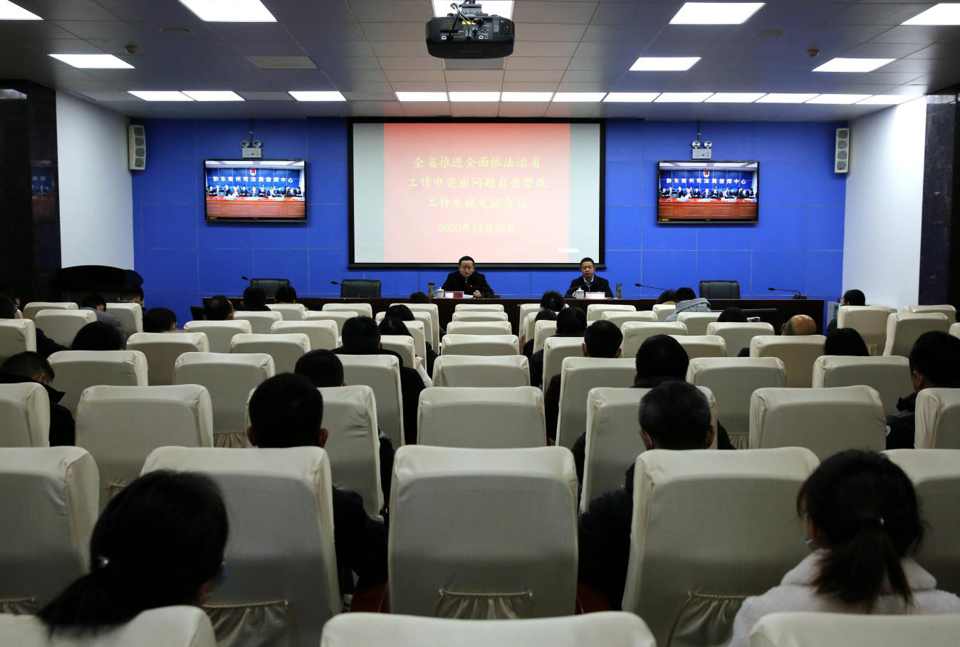 12月29日上午,中共贵州省委全面依法治省委员会办公室召开推进全面依法治省工作中突出问题自查整改工作电视电话会议。省委全面依法治省委员会办公室常务副主任、省司法厅厅长张涛同志出席会议并讲话。省委全面依法治省委员会办公室专职副主任、省司法厅副厅长李兵同志主持会议。省委全面依法治省委员会各协调小组成员单位及省有关单位在省司法厅机关主会场参会,各市、自治州党委全面依法治市(自治州)委员会办公室常务副主任、专职副主任、相关处(科)室负责人及工作人员在分会场参加会议。