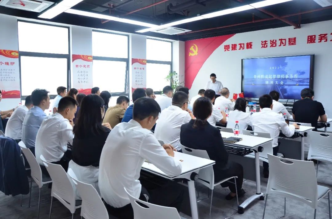 近日,贵州黔成起智律师事务所结合党史学习教育,将党课学习与业务培训有机结合,组织开展了一堂内容丰富、生动精彩的学习授课。贵州省律师行业党委委员、省律师协会副会长、贵州泽丰律师事务所主任石利民应邀出席活动。贵州黔成起智律师事务所全体律师、实习律师和行政人员共50余人参加会议。