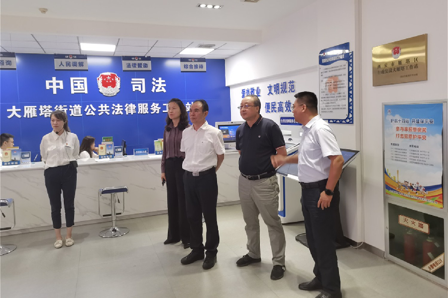 8月24日至25日,司法部人民参与和促进法治局副局长闫晋东一行先后深入西安市临潼区代王司法所、灞桥区席王司法所、雁塔区大雁塔司法所、长安区五台司法所、高新区细柳司法所等,调研司法所规范化建设工作暨全国司法所会议观摩点筹备情况,陕西省司法厅党组书记、厅长王永明会见司法部调研组一行,省司法厅党组成员、副厅长麻仁伟,西安市司法局党组书记赵夏等一同参与调研。