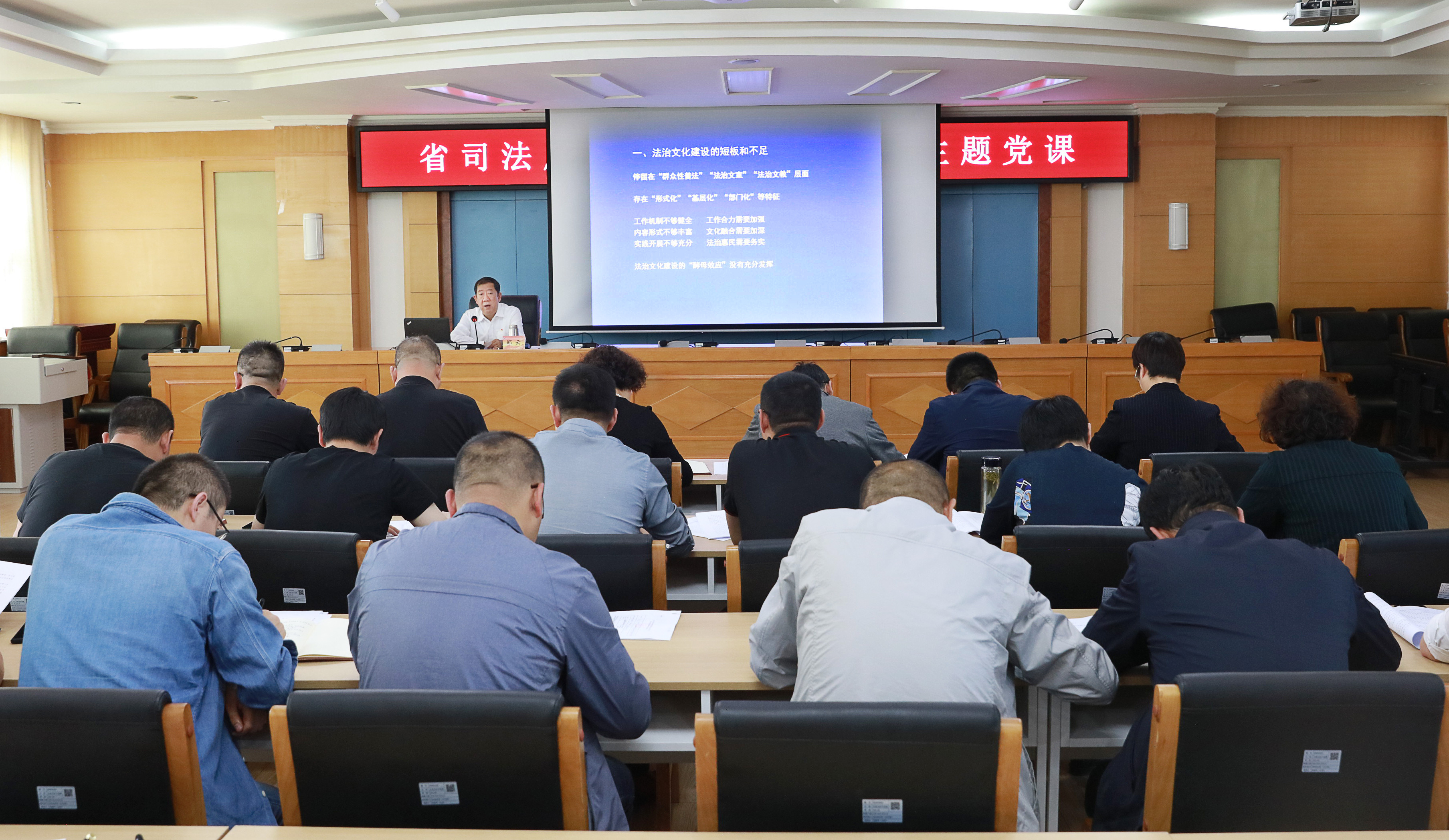 根据厅机关第二批政法队伍教育整顿部署安排,结合习近平总书记“七一”重要讲话精神学习宣传贯彻和党史学习教育,9月10日,省司法厅党组成员邵云为厅机关第一、第八、第十二党支部讲授党课,厅办公室、普法与依法治理处、法律职业资格管理处、科技信息处全体党员和干部职工听讲。