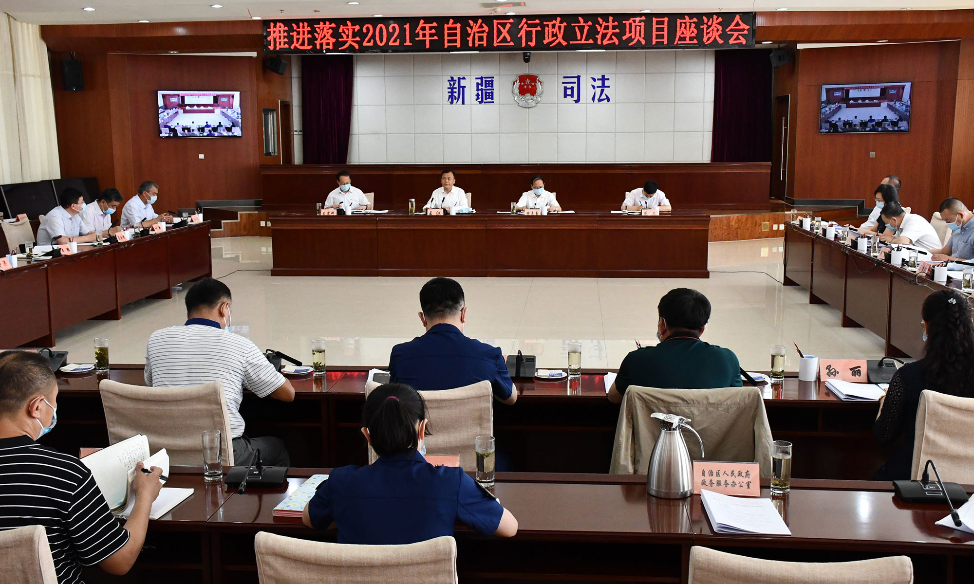 6月25日上午,自治区党委全面依法治疆委员会办公室、自治区司法厅联合召开推进落实2021年自治区行政立法项目座谈会。深入学习贯彻习近平法治思想,学习贯彻第三次中央新疆工作座谈会精神,通报上半年自治区人民政府2021年立法计划执行情况,安排部署下半年行政立法工作。自治区党委全面依法治疆委员会办公室副主任,自治区司法厅党委书记、副厅长,自治区监狱管理局第一政委王江主持会议并讲话。