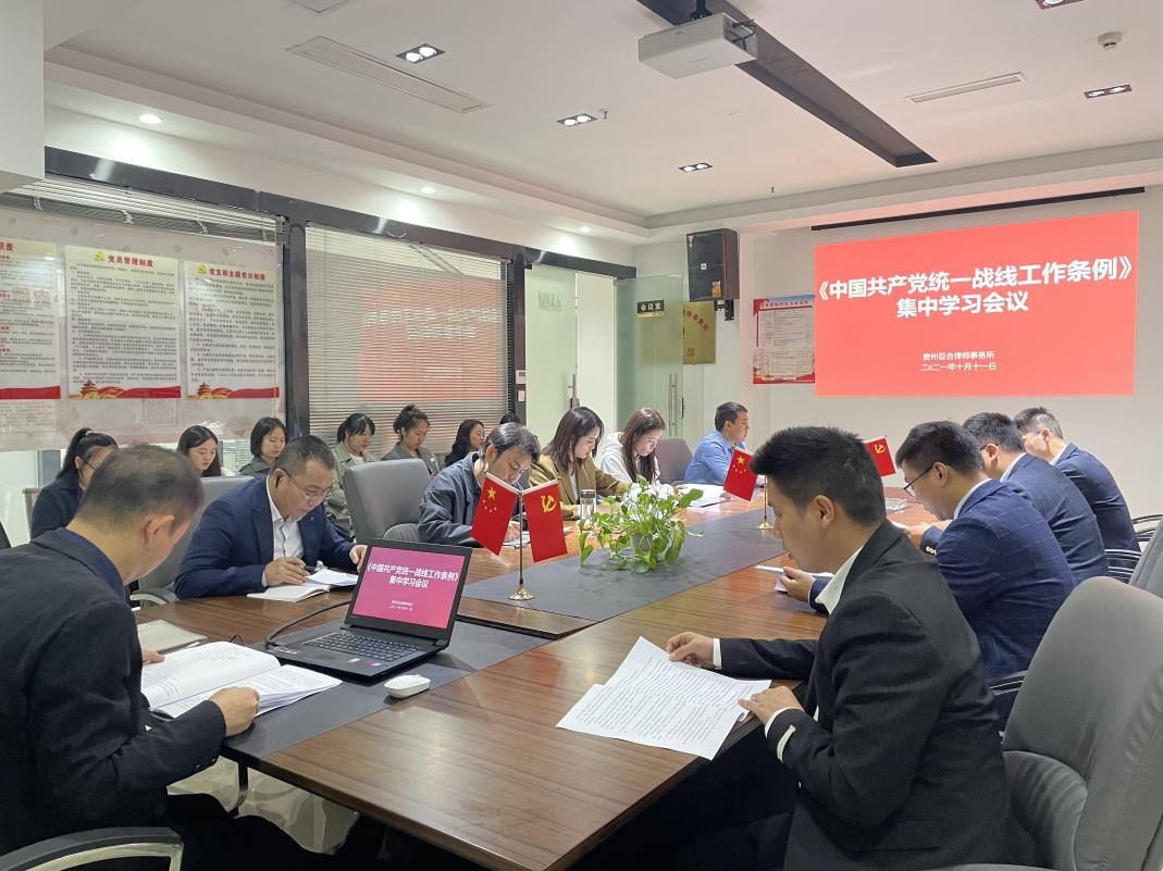 近日,贵州财团律师事务所组织全所成员学习《中国共产党统一战线工作条例》(以下简称《条例》)的活动。本次活动由龚经涛主任主持,律所成员有十余人参加学习。