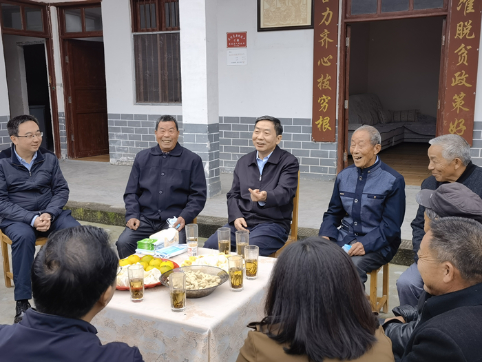 图为中央依法治国办组成人员、司法部副部长熊选国带队赴司法部定点帮扶的广元市苍溪县云台村进行调研慰问。