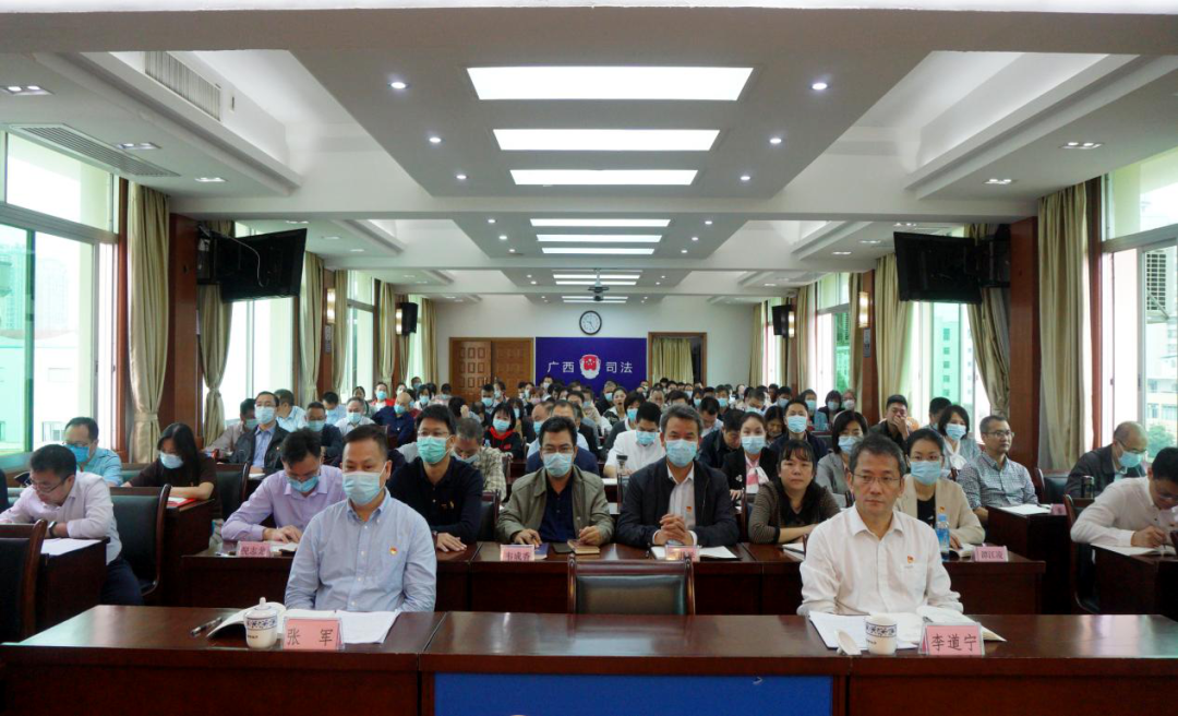 为弘扬英模精神,发挥先进典型示范榜样作用,纵深推进第二批司法行政系统队伍教育整顿工作,10月29日,自治区司法厅组织举办司法厅及直属系统身边典型人物先进事迹报告会,弘扬身边司法行政先进典型感人事迹和崇高品质,树立学习先进典型、崇尚先进典型、争当先进的良好风尚。报告会以视频会形式召开,自治区司法厅设主会场,自治区监狱管理局、自治区戒毒管理局、广西警官学校设分会场。? 自治区司法厅主会场 近年来,全区各级司法行政机关认真学习贯彻习近平新时代中国特色社会主义思想,坚持以人民为中心,坚持改革创新,在做好新时代司法行政工作、助力脱贫攻坚和乡村振兴、奋勇抗击新冠肺炎疫情、服务保障经济社会发展等方面取得了优异成绩、做出了积极贡献,在此过程中,涌现出了一大批事迹可信、形象可亲、品格可敬、精神可学的先进典型。为了激励干部见贤思齐、创先争优,推动第二批司法行政系统队伍教育整顿走深走实,经厅党委研究决定,在第二批司法行政系统队伍教育整顿单位中开展向“身边典型人物”学习活动,集中宣传学习黄崇明、宋彬、罗晋军、韦昌涛、金克勤、覃洁、陈宏等7名先进人物事迹。 自治区司法厅办公室副主任?黄崇明 自治区司法厅人民参与和促进法治处副处长?宋彬 自治区监狱管理局刑罚执行处副处长?罗晋军 自治区监狱管理局直属机关党委二级主任科员?韦昌涛 自治区戒毒管理局政治部组织培训办公室主任?金克勤 自治区戒毒管理局办公室副主任 覃 洁 广西警官学校警体教研室主任、四级调研员?陈 宏 报告会上,7名先进典型用生动的语言、动人的情感向大家呈现了共产党员坚守初心使命,勇于担当作为的感人事迹,这些事迹平凡质朴而又令人感动,在座的每一位同志都接受了一次精神的洗礼、心灵的触动。 宣讲报告结束后,大家纷纷表示一定要以此次活动为契机,对照先进典型看自己,把学习身边典型先进事迹转化为自身工作动力,坚持公正司法、一心为民工作主线不放松,凝心聚力,扎实进取,全面展现广西司法行政人的新担当、新作为、新形象。