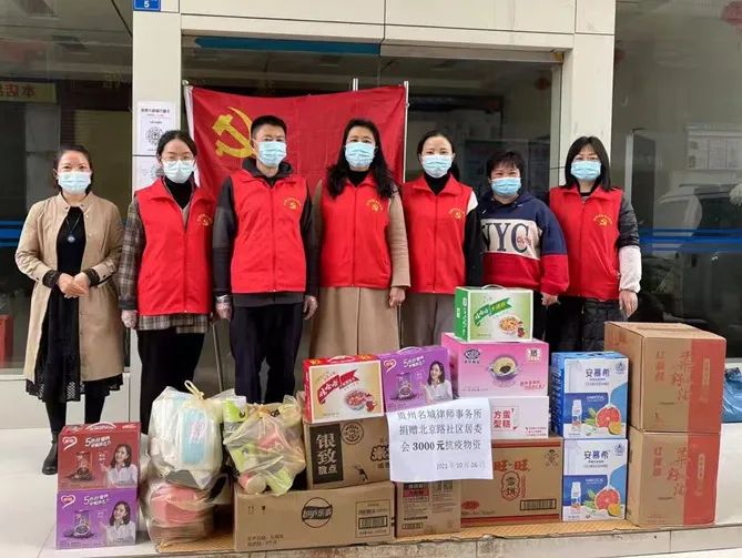 2021年10月18日22:30,自遵义市汇川区发现首例新冠肺炎确诊病例以来,遵义律师快速响应,奔赴一线,尽显责任与担当。无惧秋霜晨露,律师冲锋在疫情抗战最前线,体现了遵义律师的良好形象。 播州区? ?把抗疫物资送到一线 遵义律师送去抗疫物质并参加采样点值守 一是积极到社区担任志愿者。居住于播州区的律师在行政部门的组织下,以社区志愿者的身份积极投身到抗疫工作中。卡点值守有律师身影,协助社区工作人员做好小区进出人员证件查验、信息登记、体温测量、快递消杀等工作;核酸采样点有律师身影,开展宣传政府疫情防控政策活动、帮助老年人进行扫码登记、维持“一米线”秩序等;劝离车辆有律师身影,协助社区人员对乱停乱放车辆进行劝离,检查停放车辆驾驶员的健康码与核酸检测情况等。 二是积极捐款捐物。截至发稿时,胡双林、罗孝堂、王迪、郑永倩、李旭东、刘富刚等律师积极响应播州区委统战部号召和区新联会倡议,主动捐款至播州区新联会购买疫情物资。10月26日上午,罗孝堂、王迪代表捐款律师,与遵义市播州区新的社会阶层人士联谊会一道,分别向播州区桂花桥街道、龙坪镇人民政府捐赠了近1.6万余元的物资。 名城所? ?捐资抗疫一线 ??齐心共度难关 自2021年10月19日贵州遵义疫情爆发以来,中共名城律师事务所支部委员会积极响应市委市政府、区委区政府的抗疫号召,引领贵州名城律师事务所积极组织律师参加抗疫活动,在支部的引领下贵州名城律师事务所高度重视,立即成立“贵州名城律师事务所抗疫志愿服务队”,积极组织律师参加各地各社区的抗疫活动。 10月24日,支部书记、主任袁河律师、田茂萍实习律师参加北京路社区大都会小区封控卡点值守维持秩序,张春艳律师参加播州区共青社区防疫核检执勤活动,周琴律师参加成都社区防疫核检执勤活动,其他律师、实习律师也在不同的岗位上参加抗疫。 为支持社区一线抗疫,以体现名城律师社会责任担当和共同抗疫、共克时艰的精神,2021年10月26日,名城所向北京路社区居委会捐赠了3000元的抗疫物资,助力社区抗疫疫情,众志成城,齐心协力,坚决打赢疫情防控歼灭战! 舸林所? ?遵道行义,同心抗疫 随着疫情态势的逐渐蔓延,舸林律师深知这是一场没有旁观者的全民行动,是一场没有硝烟的战疫。不管是居家隔离还是参与志愿服务都是战斗的一种方式,在这最关键的时刻,舸林所的程吉芬律师、陈娟律师分别报名参加了遵义市汇川区仁和苑社区和播州区龙坑街道办事处中山社区“和泰嘉苑”检测点的志愿者工作。 两位律师分别在隔离小区和核酸监测点开展志愿工作。程吉芬律师积极响应隔离小区封闭管理的要求,听从社区工作安排,引导和通知封闭小区的居民朋友们进行核酸检测,照顾独居老人,并及时为封闭小区的居民们派送生活物资。与此同时,陈娟律师也积极配合开展中山社区“和泰嘉苑”检测点的核酸检测工作,统计检测人员名单和信息,为检测人员进行登记,指导检测人员扫描检测码,帮助市民朋友们的核酸检测顺利完成。 尽管志愿者一天的工作很琐碎、很普通,但在疫情面前,舸林律师立即放下手头工作,克服对疫情的恐惧,在做好自身防护的前提下,奔赴在抗疫一线,坚守岗位,不怕苦累,为抗击疫情贡献一份力量,体现了舸林律师的担当和责任。 疫情牵动着每个人的心,全城市民齐心协力,只为守护这座可爱的城市,我们共同的家园。“疫”不容辞,心心相“连”,舸林人将继续积极响应党和政府的号召,积极主动参与疫情防控工作,与广大群众一同并肩作战、共克时艰,一起努力让遵义这座转折之城打赢这场抗疫攻坚战! 中贵所? ?人间有爱 ?同心抗疫 当前,遵义市突发新型冠状病毒疫情,为打赢这场防疫阻击战,全市上下齐心协力大力开展工作。10月24日,贵州中贵律师事务所副主任、汇川区女企业家商会会员向燕同志,在做好自身防护的前提下。积极投身到疫情防控志愿服务中,全力配合和落实疫情防控措施。 涓细流汇成海、点点纤尘积尘山,越是危难时刻,越显责任担当,越到艰难险阻,越显人间大爱,一箱箱物资是一份份担当与爱心,也彰显了大爱情怀,传递关爱、汇聚温暖、点亮希望!共同抗疫,共渡难关。 黔公所? ? 积极参加疫情防控工作 2021年10月20日晚,汇川区洗马路街道决定在沈阳北路恒通御苑门口广场上设立核酸集中采集点,贵州黔公律师事务所王顺利律师获取该信息后于次日6时50分到达指定位置,组织志愿者团队并召开现场保障工作会。 黔公律师积极参加订制疫情防控志愿者袖章、提供桌椅、布置警戒线、建设检测通道、维持采集秩序,采集登记、帮助受检群众录入核酸检测有关信息,接受群众咨询,向市疾控中心核实相关信息,无偿提供中晚餐等各项工作。