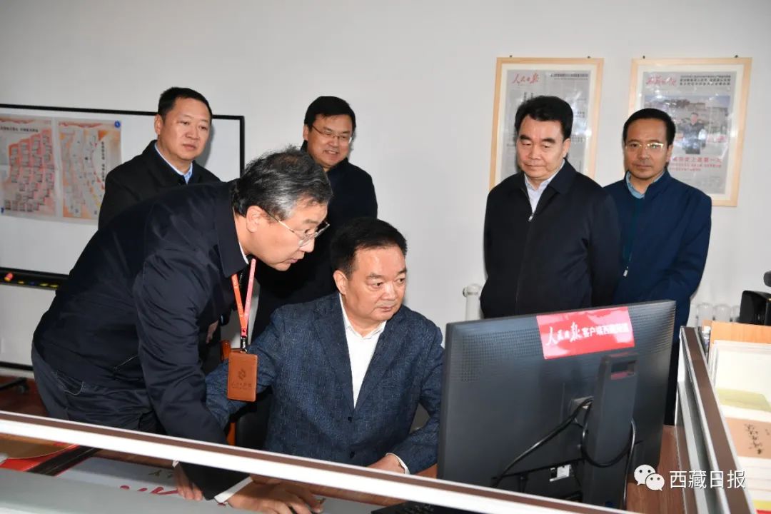 这是王君正在人民日报社西藏分社了解新闻宣传工作开展情况。记者?旦增西旦 摄