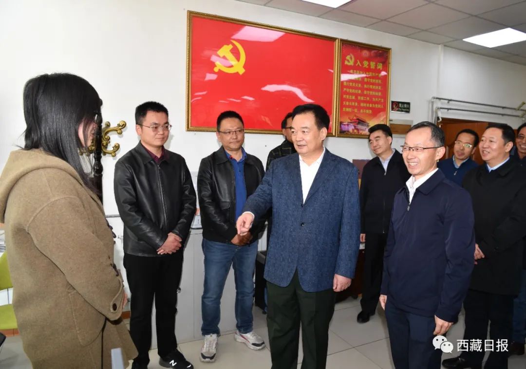 11月2日上午,自治区党委书记王君正到宣传思想文化战线开展调研,看望慰问中央驻藏媒体和西藏主要媒体一线采编播人员。