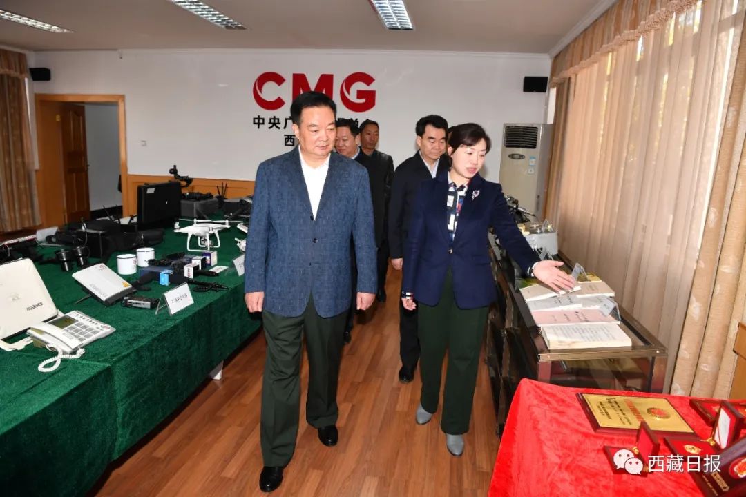 这是王君正在中央广播电视总台西藏总站调研。记者?旦增西旦 摄