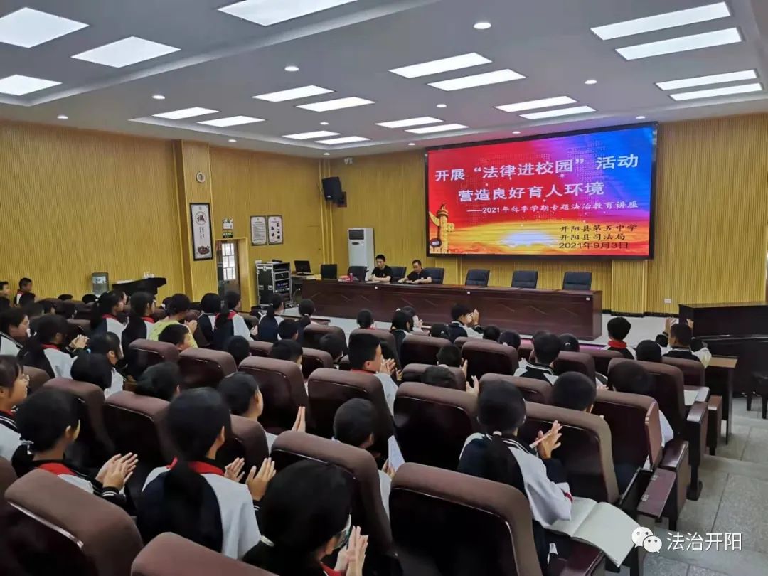 抓好“开学第一课”,推进法治进校园活动。9月开学季以来,开阳县司法局组织开展“开学第一课,法治进校园”主题宣传教育活动,17个司法所联合各乡(镇、街道)派出所、禁毒办、卫生院等单位走进校园,给全县20余所中小学10000余名师生带来了一场内容丰富、生动有趣的法治教育“盛宴”,通过开展“法治进校园”活动,切实增强青少年自觉守法和自我防范意识。