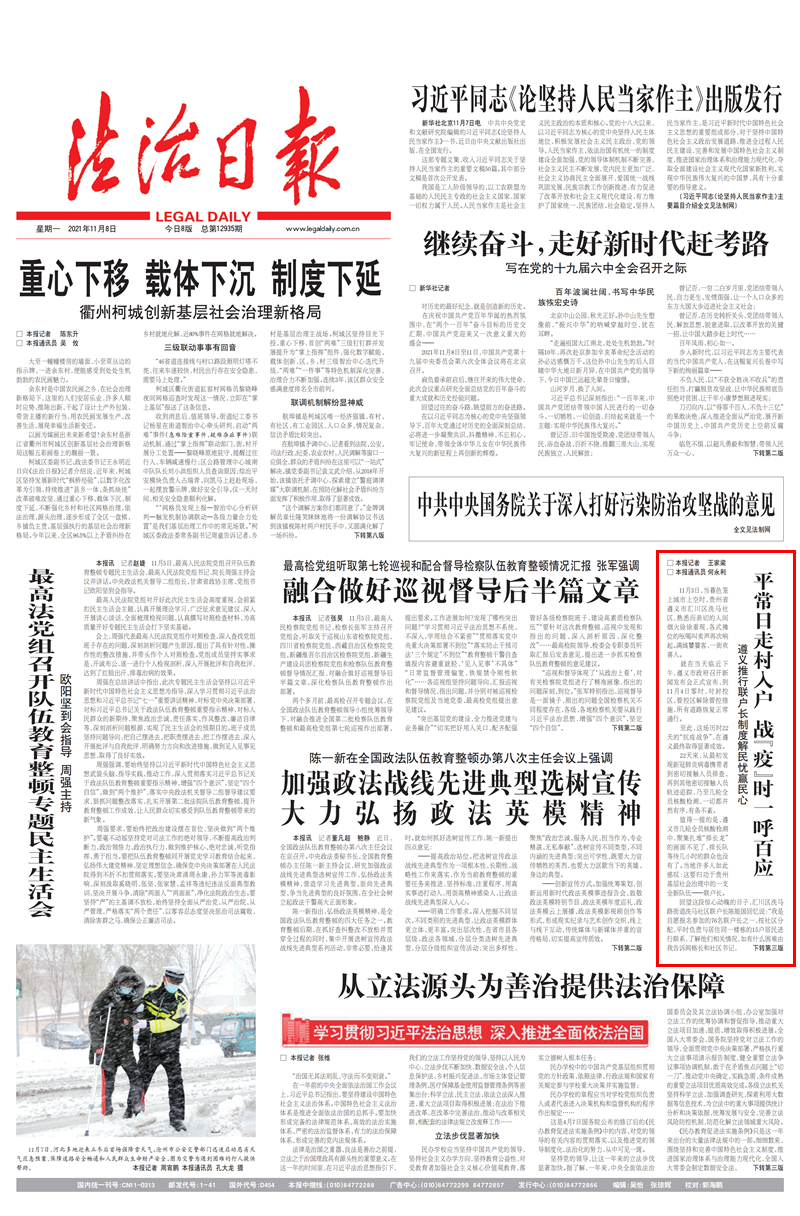 2021年11月8日 11月8日,《法治日报》头版刊发了《平常日走村入户战“疫”时一呼百应 遵义推行联户长制度解民忧赢民心》的文章。 全文如下: