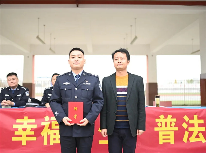 活动伊始,铺镇初级中学王琨副校长现场向汉中监狱干警王鹏程颁发了法治副校长聘书,并对汉中监狱支持学校普法教育工作表示衷心感谢。