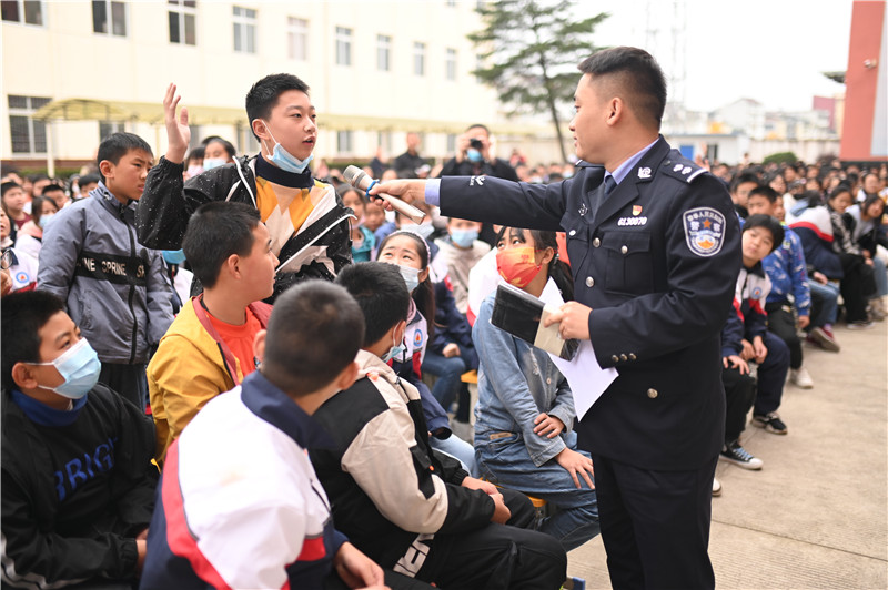 随后,王鹏程作表态发言,并针对青少年年龄特征,从《民法典》《未成年人保护法》等法律法规入手,围绕影响危害未成年人身心健康、侵犯未成年人合法权益等社会关注的热点问题,从“被害预防”与“犯罪预防”两方面深入讲解,引导学生利用法律武器维护自身权益的同时,更应遵纪守法,严格约束自身行为,培育法治意识,健全法治观念。