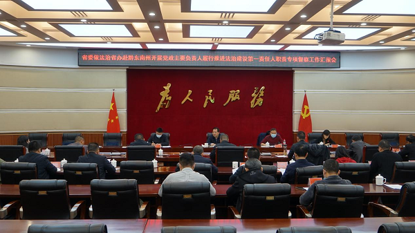 梁正彪全面汇报了黔东南州党政主要负责人切实履行推进法治建设第一责任人职责,加强党对法治建设的组织领导,围绕年度依法治省工作要点、法治领域突出问题整改、民法典宣传贯彻实施等内容,加大法治政府建设力度,平安黔东南、法治黔东南建设取得积极成效,以高水平法治建设服务全州经济社会高质量发展情况。