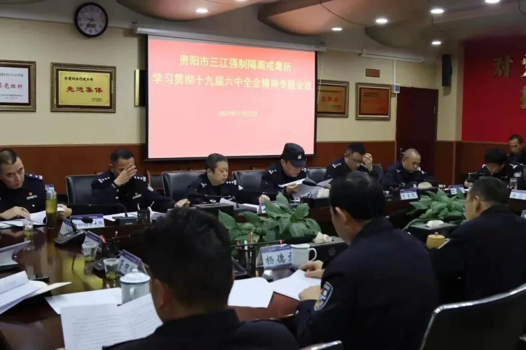 11月22日,贵阳市三江强制隔离戒毒所召开党委(扩大)会议,研究部署全所学习宣传贯彻党的十九届六中全会精神。