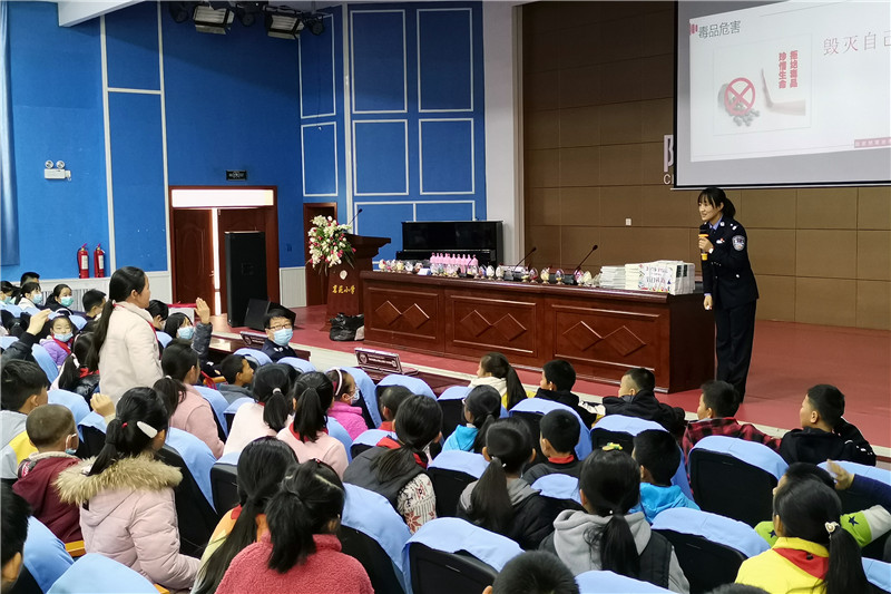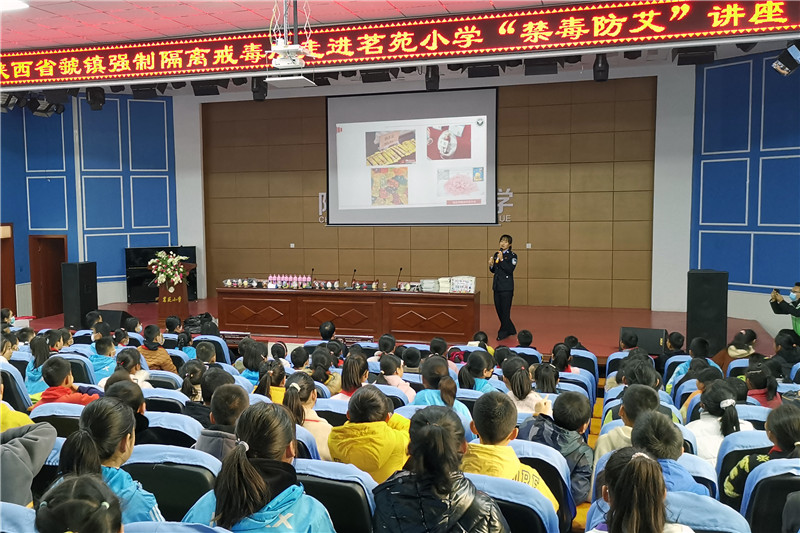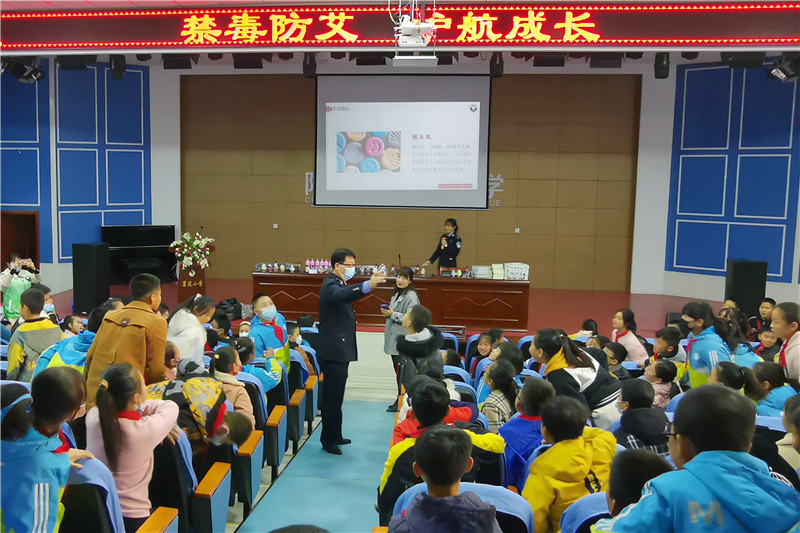 11月19日,陕西省虢镇强制隔离戒毒所干警走进了宝鸡市陈仓区茗苑小学,为五年级三百余名学生开展了以“禁毒防艾 护航成长”为主题的教育活动,为同学们送上了一堂丰富生动的健康知识和法治宣传教育课。
