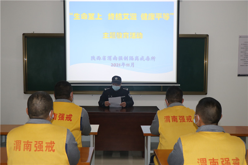 在第34个“世界艾滋病日”到来之际,陕西省渭南强制隔离戒毒所以“生命至上 终结艾滋 健康平等”为主题组织开展艾滋病防治宣传教育活动,教育戒毒人员要洁身自爱,远离毒品,提高防范意识。