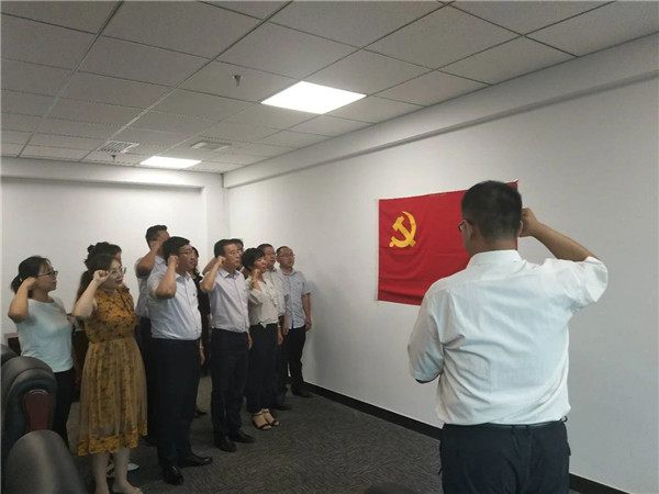 活动中,全体党员面向党旗,高举右拳,重温入党誓词,再一次以铮铮誓言表达了为共产主义事业奋斗终身的坚定信心和决心。