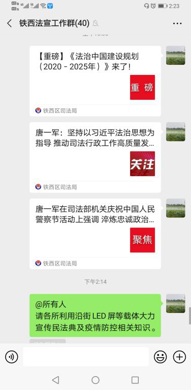 沈阳市铁西区司法局认真贯彻落实市区两级关于疫情防控的相关部署,迅速应对、主动作为,在全力抓好疫情防控工作的同时,积极开展法治宣传工作,做到防疫和宣传两不误。