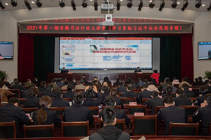 3月3日,省司法厅举办2021年第一期安徽司法行政大讲堂,专题学习习近平法治思想,全省司法行政机关4200多名政法干警在现场或者通过视频会议系统聆听大讲堂。此举开启了安徽司法行政系统政法队伍教育整顿学习教育环节政治教育的第一课。