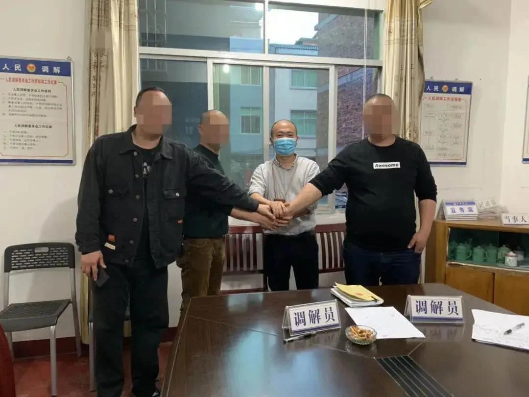 调解员从伦理道德和公序良俗角度对三方进行劝导;司法所告知调解协议的效力以及调解解纷的好处;派出所分析长期聚集引发纠纷的不良后果;法院列举以往相似案例的判决结果;律师介绍法律赔偿标准……多方努力下,当事各方很快签署了人民调解协议书,一起可能引发群体性事件的纠纷得以圆满解决。