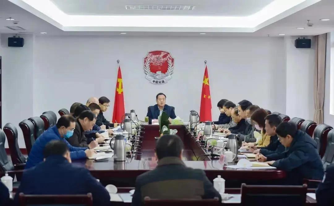 图为福建省司法厅党委书记、厅长邬勇雷召开厅党委扩大会议,要求深入学习贯彻落实中央政治局常委会关于加强新型冠状病毒肺炎疫情防控工作会议精神