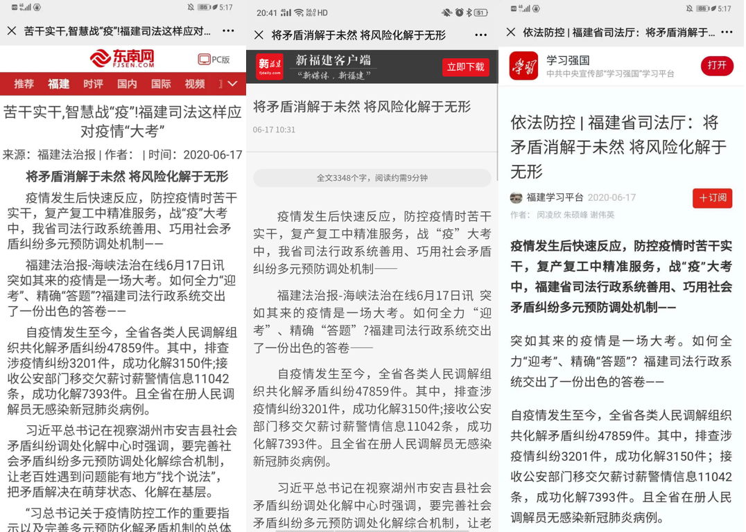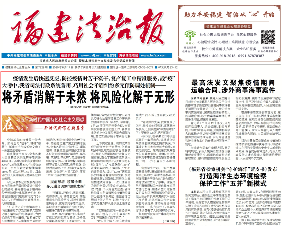 《福建法治报》:将矛盾消解于未然 将风险化解于无形——福建省司法行政系统战“疫”秘诀