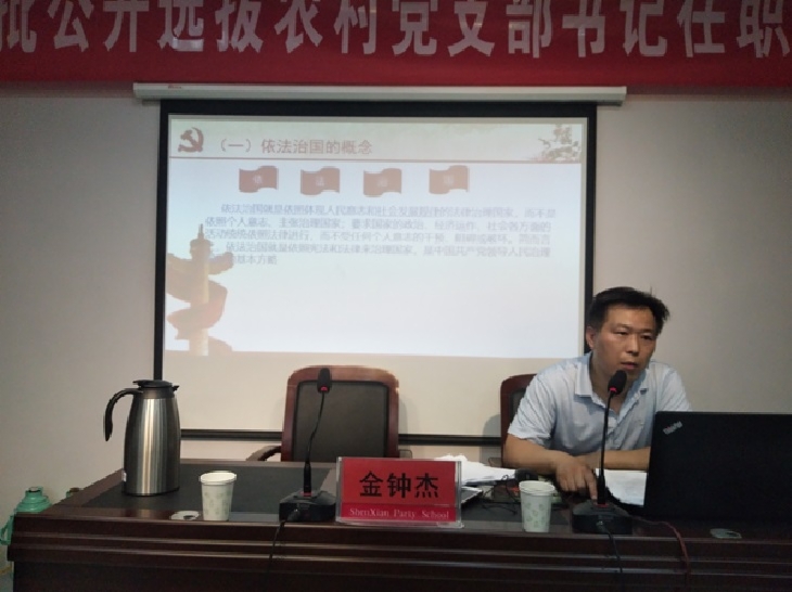6月11日,莘县法律援助中心主任金钟杰为第二批公开选拔农村党支部书记任职讲授法治扶贫,第二批公开选拔农村党支部书记、组织部工作人员参加培训。