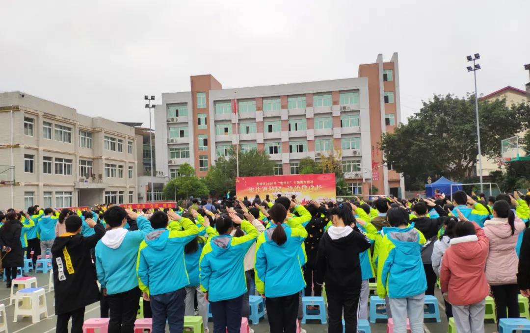 12月3日,沙坪坝区关工委、区教委、区司法局联合主办的第四届“关爱明天、普法先行”青少年普法教育示范活动在大学城第三中学举行,500余名中小学师生代表参加活动。