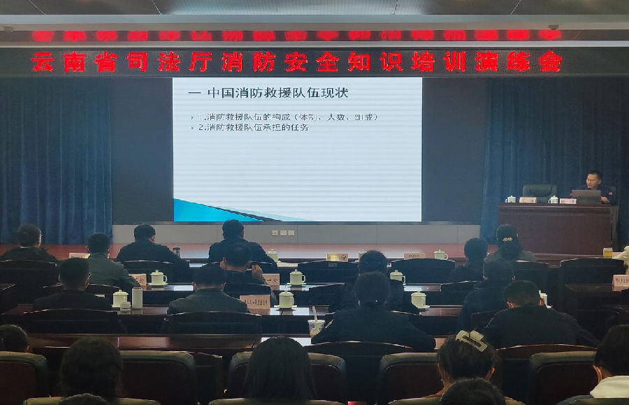 云南省司法厅举行消防安全知识培训演练会