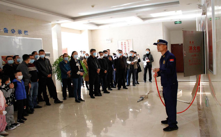 为使参训人员对消防器械使用知识能消化吸收、易学易懂、加强记忆,课堂讲座结束后李宁老师现场对厅机关2号楼1楼消防栓、灭火器的使用进行了详细的讲解,并指导参加培训的人员依次进行灭火器的操作演练。