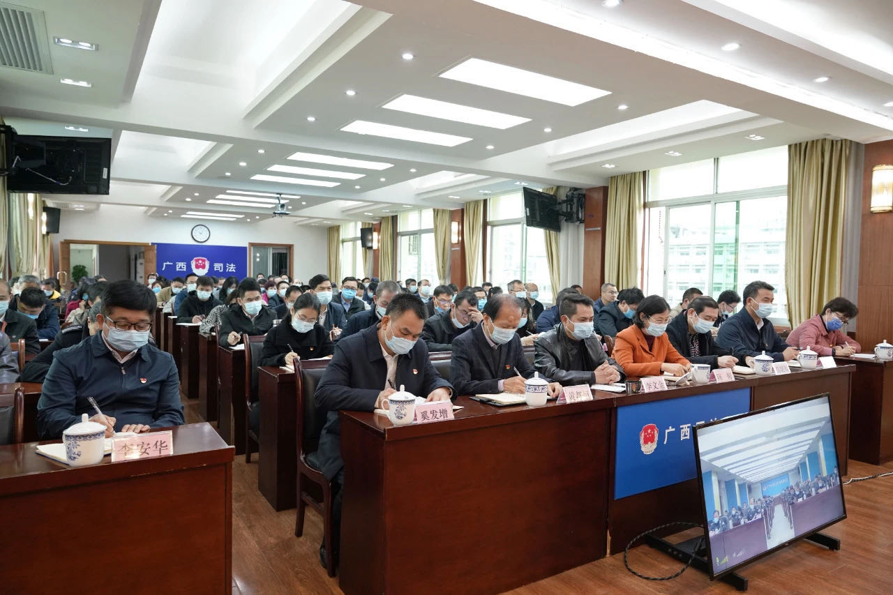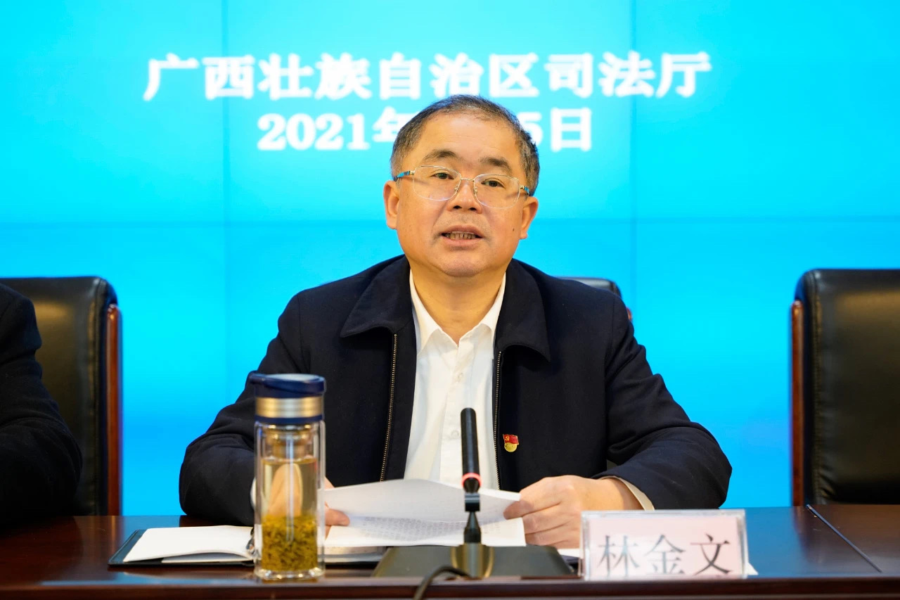 ?3月5日上午,自治区司法厅以视频会议形式召开全区司法行政系统党史学习教育动员部署会,学习贯彻中央、自治区党委关于开展党史学习教育的决策部署,深入学习贯彻习近平总书记在党史学习教育动员大会上的重要讲话精神,认真落实自治区党委鹿心社书记在全区党史学习教育动员大会上的讲话精神,对全区司法行政系统开展党史学习教育进行动员部署,引导全系统党员干部牢记初心使命,矢志艰苦奋斗,在新征程上奋力推动司法行政工作高质量发展,为建设更高水平的平安广西、法治广西,助推“十四五”开好局、起好步,作出广西司法行政应有贡献,以优异成绩迎接建党100周年。厅党委书记林金文出席会议并讲话,厅长雷震主持会议。