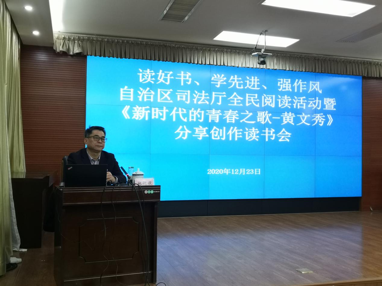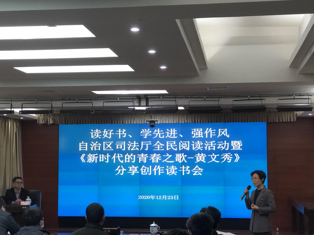 自治区司法厅举办“读好书 学先进 强作风”全民阅读活动暨《新时代的青春之歌—黄文秀》创作分享读书会