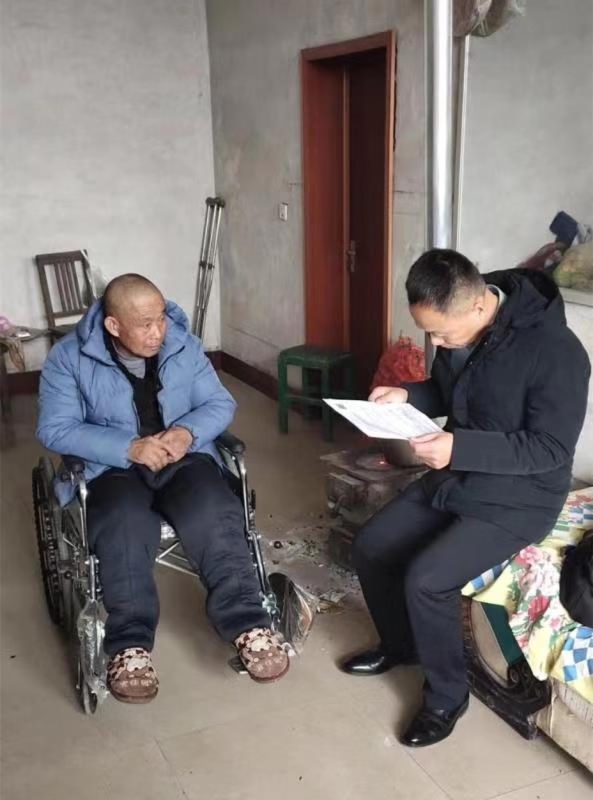 杨某是大魏村的低保户,已经70岁高龄,家中妻子和儿子均患有精神疾病,生活不能自理。2019年12月,杨某不幸发生车祸,本就拮据的家庭更是雪上加霜。杨某无力支付四万元的住院医疗费,全靠村里好心村民集体筹钱垫付。眼看就要过年了,车祸肇事方一直没有积极理赔,这让目前还在家养伤的杨某焦急万分。法律援助中心了解事情来龙去脉之后,立即为杨某开通“绿色通道”,即时受理、审批、指派案件。考虑到杨某卧床养伤,行动不便,法律援助中心决定为其上门提供法律服务。