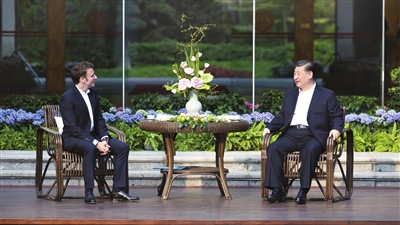 4月7日下午,国家主席习近平在广东省广州市松园同法国总统马克龙举行非正式会晤。两国元首临水而坐,观景品茗,纵论古今。