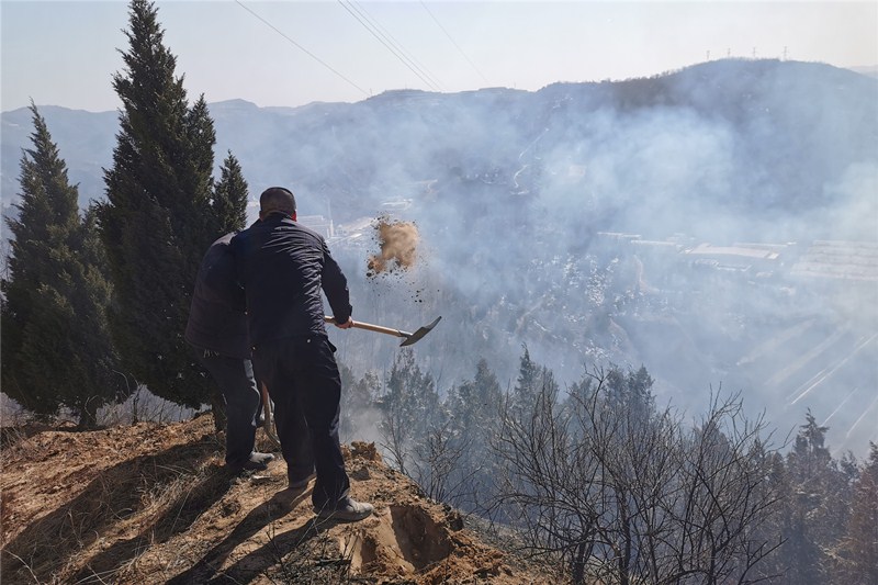 山路狭窄、陡峭,很多地方没有路,大家与赶来的武警官兵、消防战士、当地民兵志愿者一起,前边拉、后边推,以最快速度向山上冲去。到达现场后,面对浓烟和烈火,在高玉开监狱长的指挥下,大家铁锹拍、泥土压、挖隔离带……经过近一个小时奋战,火势终于得到有效控制,已不见明火出现。但因地面有大量杂草和落叶,现场仍有阴燃的残火,不断有白烟窜出,周围空气烟火味浓重。高玉开放心不下,叮嘱大家注意安全,同时把大家聚在一起组织来回巡查,不断用铁锹把泥土翻起再覆盖压实,逐一排险、防止复燃。