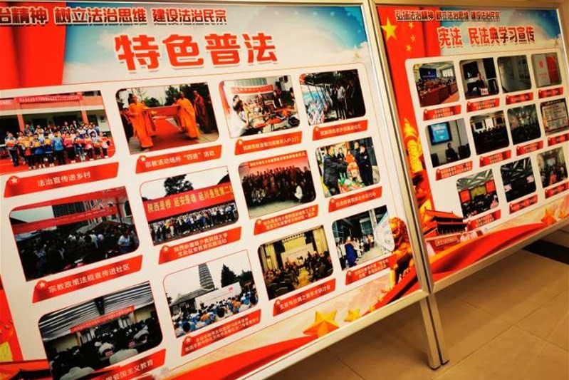 下午,检查验收组查验了民族宗教事务委员会的“七五”普法工作,省民宗委主任王爱民主持汇报会并作工作汇报。检查验收组观看了全省民族宗教工作系统“七五”普法成果展板、普法专题片、汇报材料PPT,查阅了工作档案资料,并赴西安市莲湖区学习巷社区、莲湖区广仁寺实地检查民族宗教政策法规进社区、进寺庙情况,尤其是社区针对少数民族群众开展的民族政策法规宣讲和法律服务工作,宗教活动场所开展的升国旗、宪法与法律法规、社会主义核心价值观、优秀传统文化“四进”活动的具体做法以及取得的成果。检查验收组对全省民族宗教工作系统“七五”普法工作给予充分肯定并提出具体要求,对今后工作提出了指导性意见。检查验收组强调,要提高政治站位,充分认识“七五”普法总结和检查验收工作的重要性和必要性,坚持问题导向,对照检查验收要求,进一步查漏补缺,顺利完成好“七五”普法总结和检查验收各项工作任务。