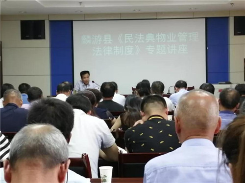 为进一步推进麟游县物业管理人员和业主法治水平,全面推广《民法典》中相关物业管理法律制度,不断提升物业管理水平,减少物业服务纠纷,更好开展物业服务工作。8月13日,麟游县司法局、县人大环资委在县市民中心五楼会议室联合举办了“民法典物业管理法律制度”专题讲座。
