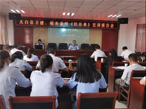 8月12日,由中共太白县委普法工作领导小组办公室、县司法局、县卫健局、县税务局联合举办太白县卫健、税务系统《民法典》宣讲报告会,特邀陕西炎城律师事务所对《民法典》进行解读。培训由县税务局党委书记、局长主持。