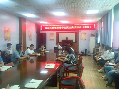 蒲城县司法局宣讲团成员——陕西卓星律师事务所在蒲城县畜牧发展中心进行《民法典》宣讲。深入浅出地解读了《民法典》的深远意义,全方位诠释了《民法典》是一部体现我国社会主义性质、符合人民利益和愿望、顺应时代发展要求的法典。培训中,还与参训人员就疑难点问题进行了讨论交流,“有不懂的字查找新华字典,有不懂的民事查找民法典”之类风趣语言,使在场人员听得津津有味,进一步激发了干部学习《民法典》的自觉性和主动性。