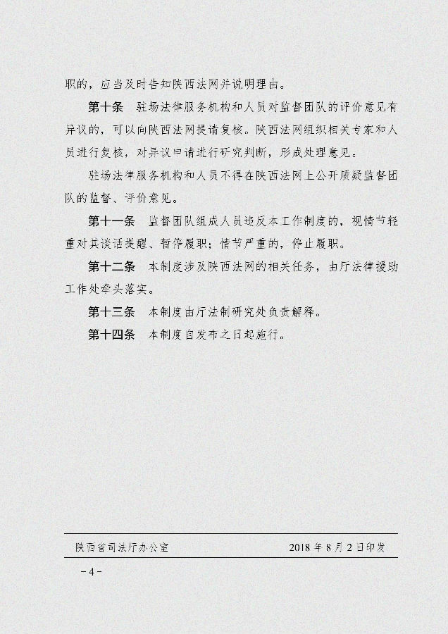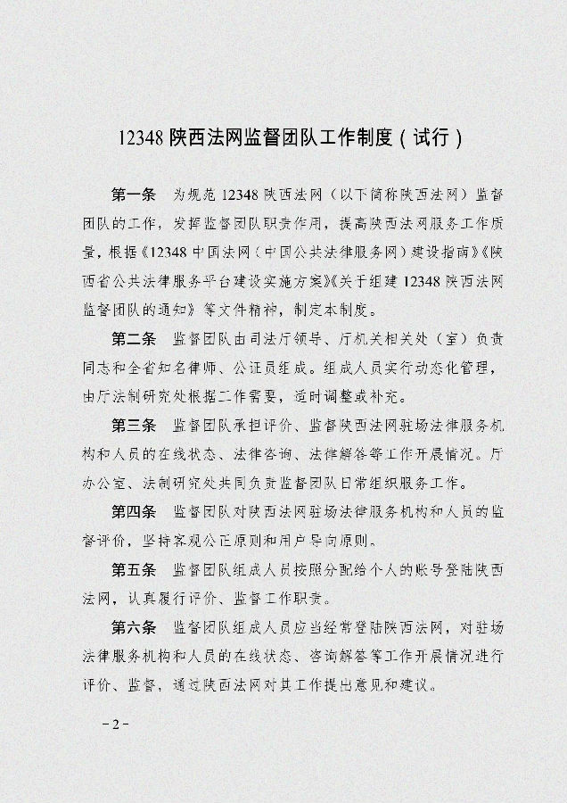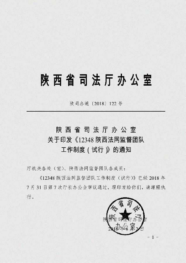 陕西省司法厅办公室关于印发《12348陕西法网监督团队工作制度(试行)》的通知