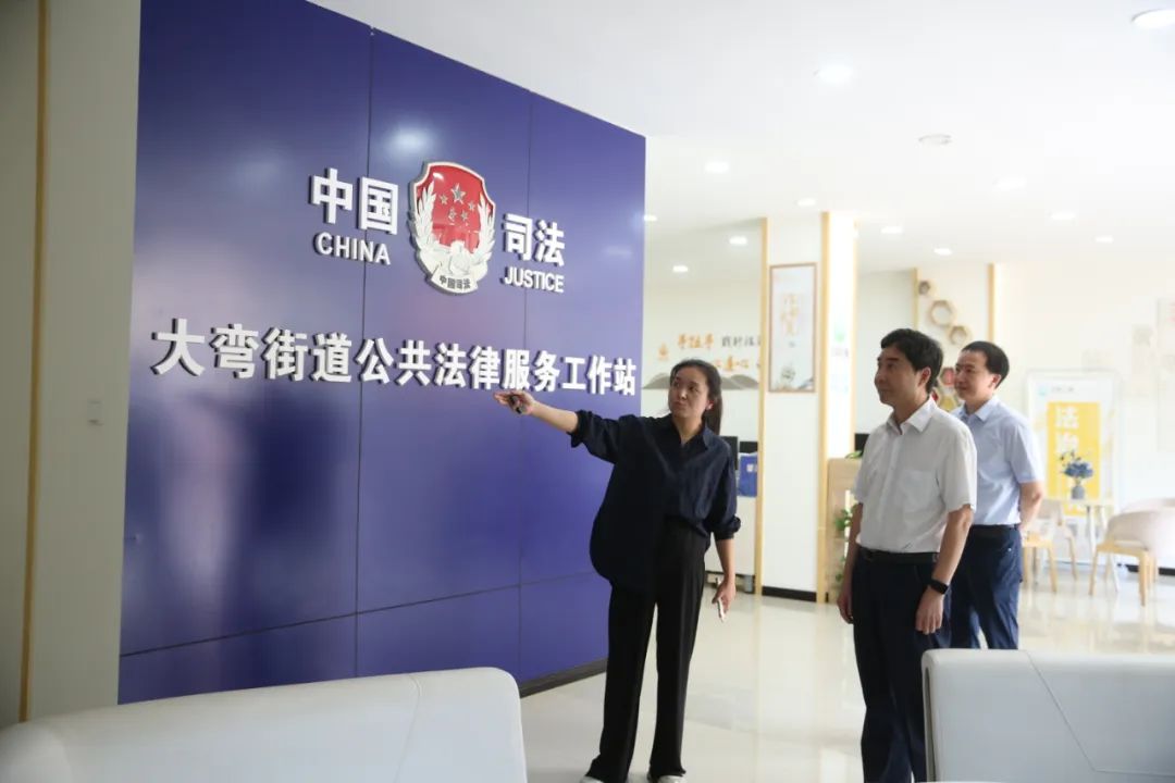 在成都市青白江区司法局大弯司法所,刘志诚一行详细了解合法性审查、行政执法、公共法律服务、小区调解、远程探视等工作开展情况,并认真听取提升司法所服务保障高质量发展能力的意见建议。
